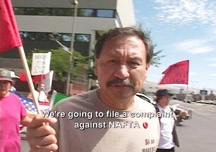 Clip on Apple Workers Struggle in Washington An excerpt from a section that shows Mexican, Canadian and US workers and NGOs trying to aid workers fighting for the right to organize the apple industry in Washington State. Click on Image |